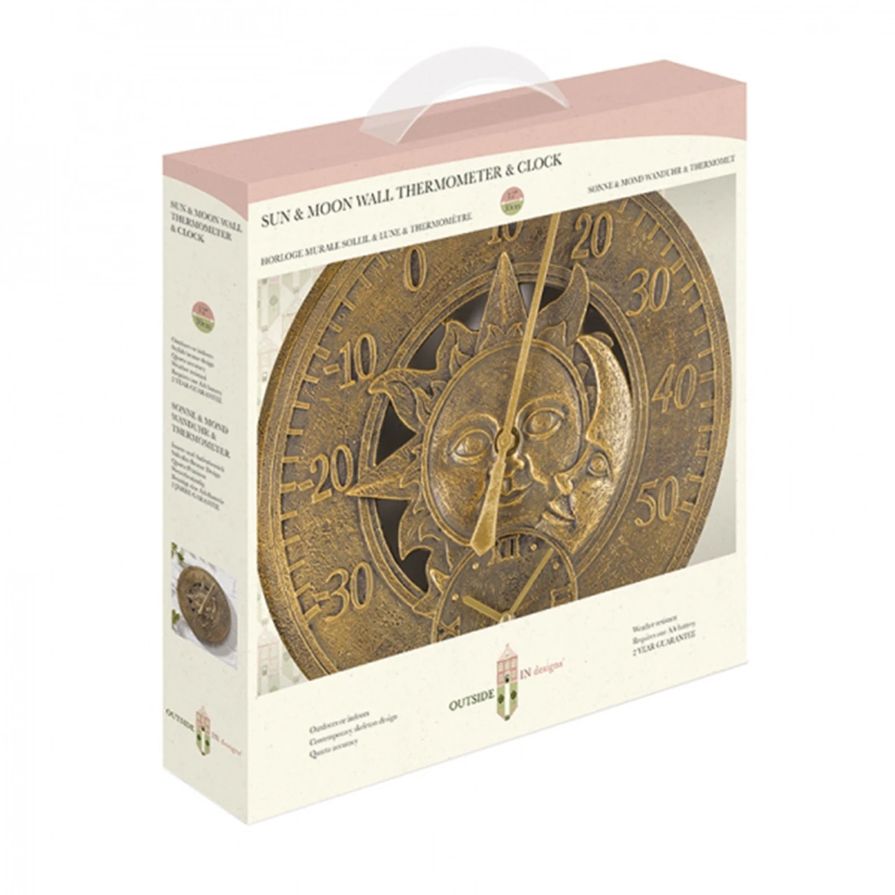 Sun and Moon Wall Clock and Thermometer
