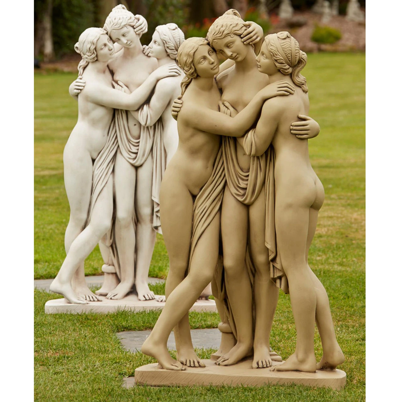 These elegant statues from UK craftsmen at Border Stoneware are professionally made, highly detailed, hand finished, solid and fully cast. In this piece inspired by Antonio Canova, Borderstone recreate The Three Graces, the daughters of Zeus.